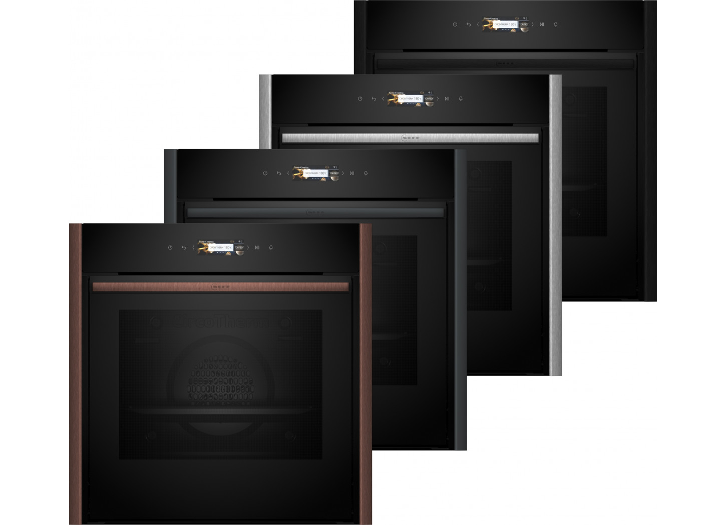Flex Design beépíthető sütő Slide & Hide® funkcióval - cserélhető dizájnelemek különböző színekben. Könnyen kezelhető ajtó, amely finoman eltűnik a sütő alatt. Home Connect – vezérelje sütőjét az alkalmazáson keresztül. |
